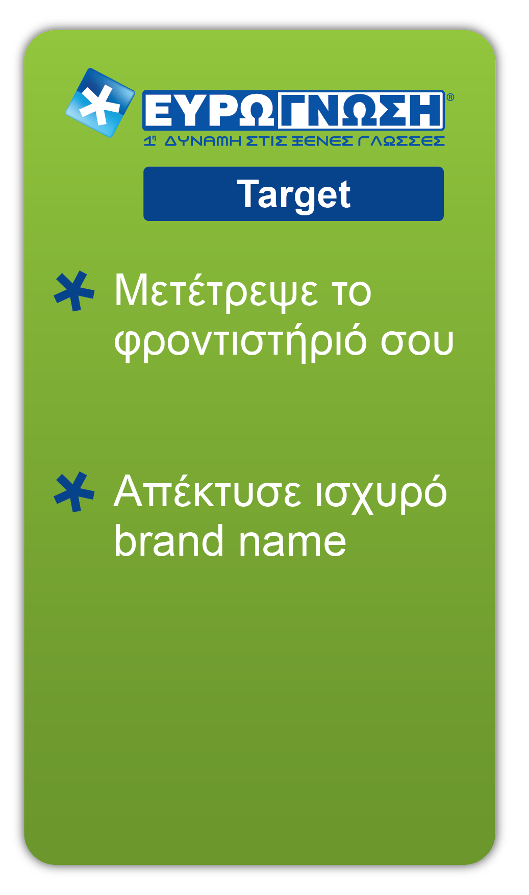 Στόχος της εταιρείας είναι η διεύρυνση των εκπαιδευτικών υπηρεσιών σε νέους, πολλά υποσχόμενους τομείς για τους επιχειρηματίες που επιθυμούν να αποκτήσουν το δικό τους κέντρο ΕΥΡΩΓΝΩΣΗ® και ΕΥΡΩΓΝΩΣΗ® Studies