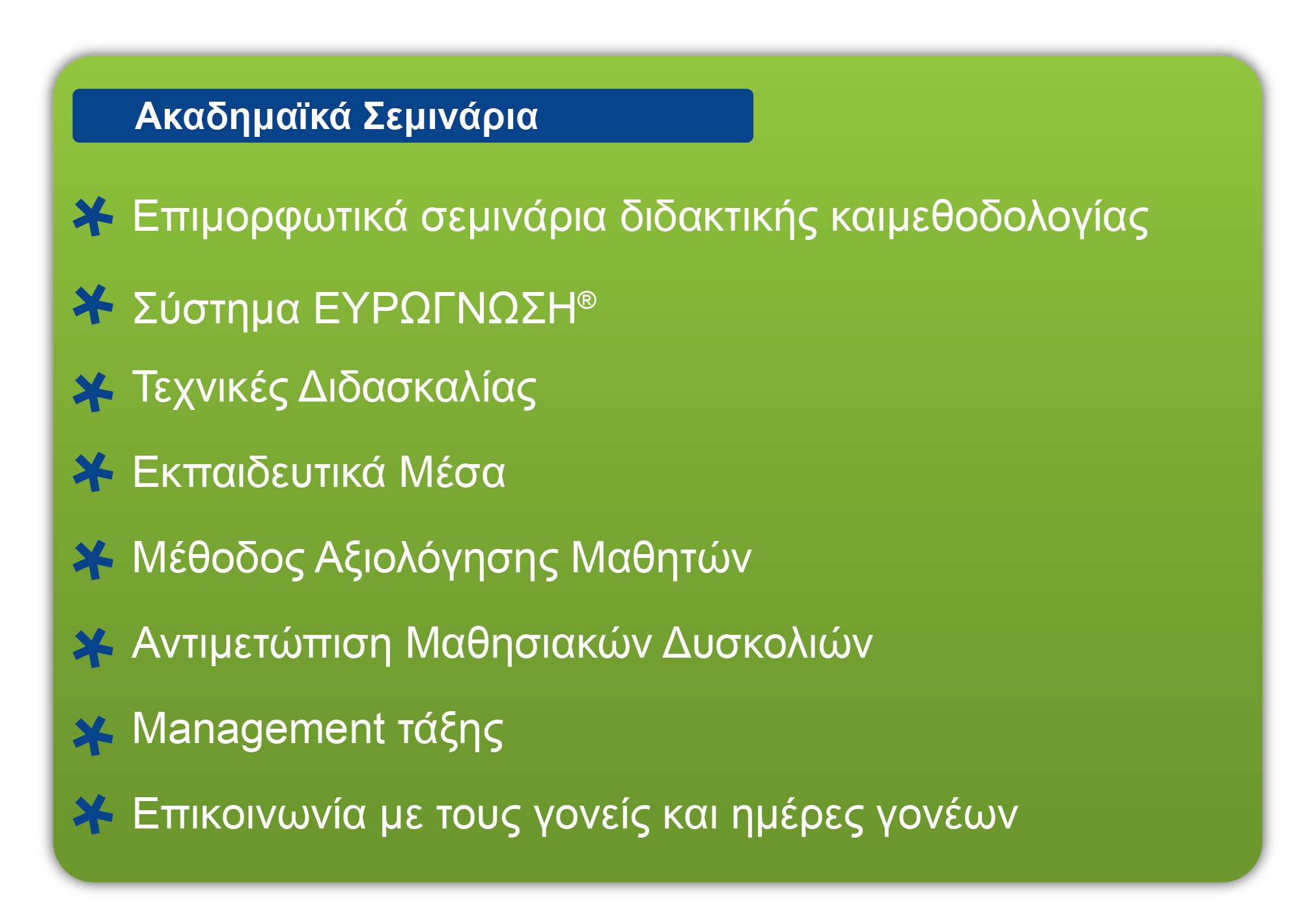 - Ακαδημαϊκή και διοικητική υποστήριξη από managers EYΡΩΓΝΩΣΗ®